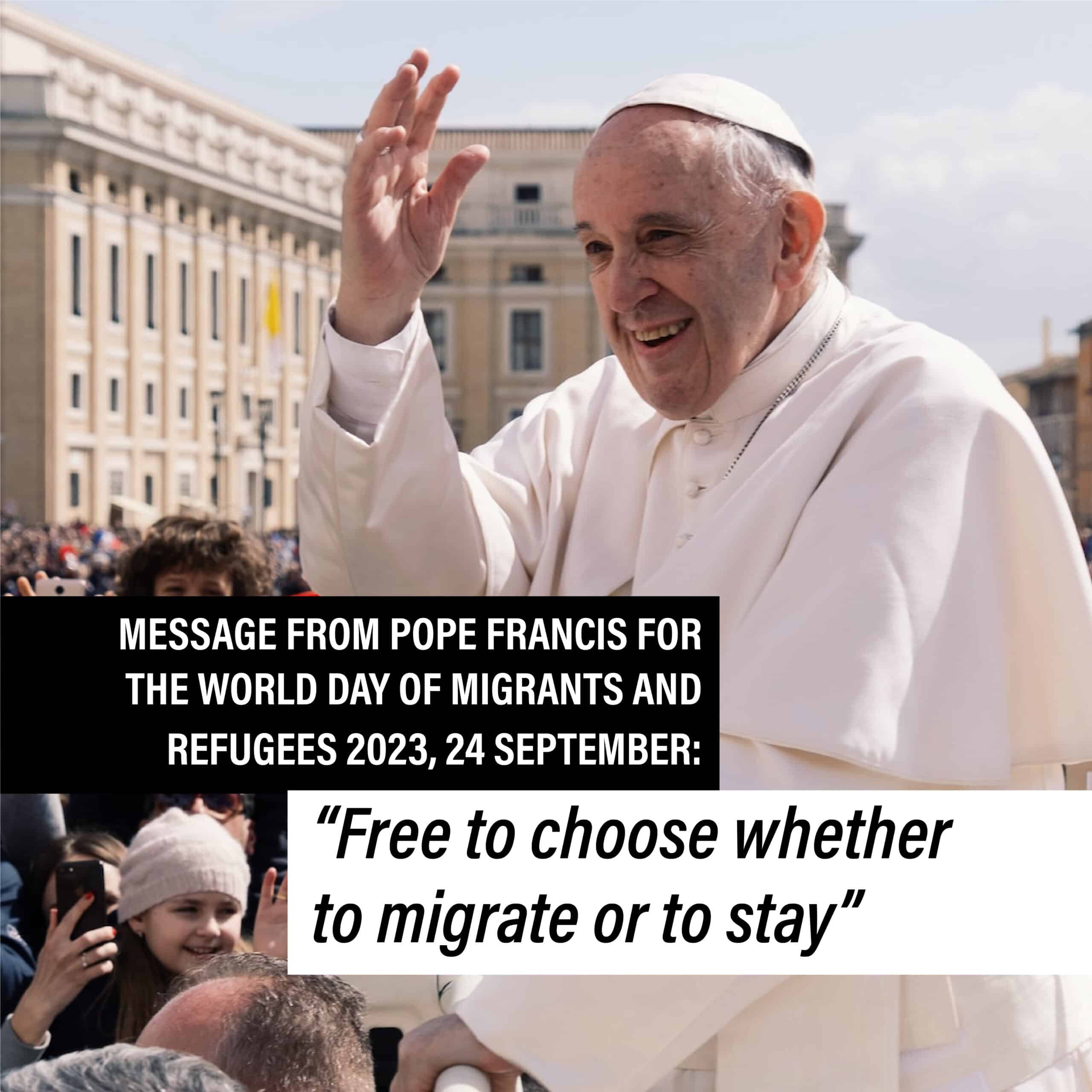 His Holiness Pope Francis has issued a message to mark the 109th World Day of Migrants and Refugees, this Sunday 24th September, titled “Free to choose whether to migrate or to stay”.