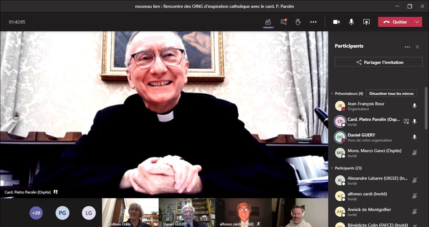 1. Welcoming Cardinal Pietro Parolin to the videoconference with the Catholic-inspired INGOs accredited to the Council of Europe.