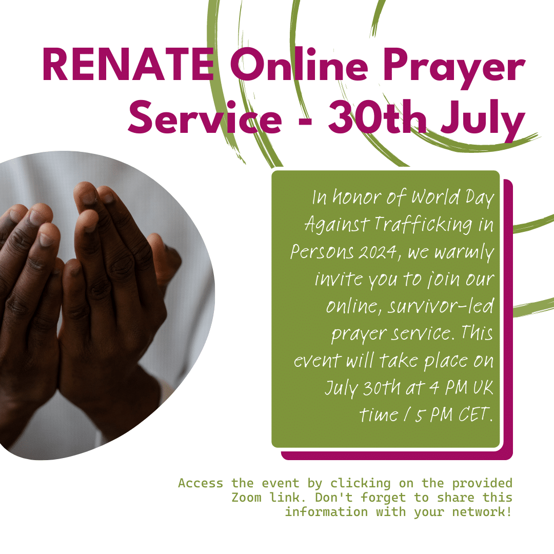 To mark World Day Against Trafficking in Persons, the RENATE House of Prayer Task Group will host an Online Prayer Service to mark the World Day Against Trafficking in Persons (July 30th from 4pm GMT and 5pm CET).